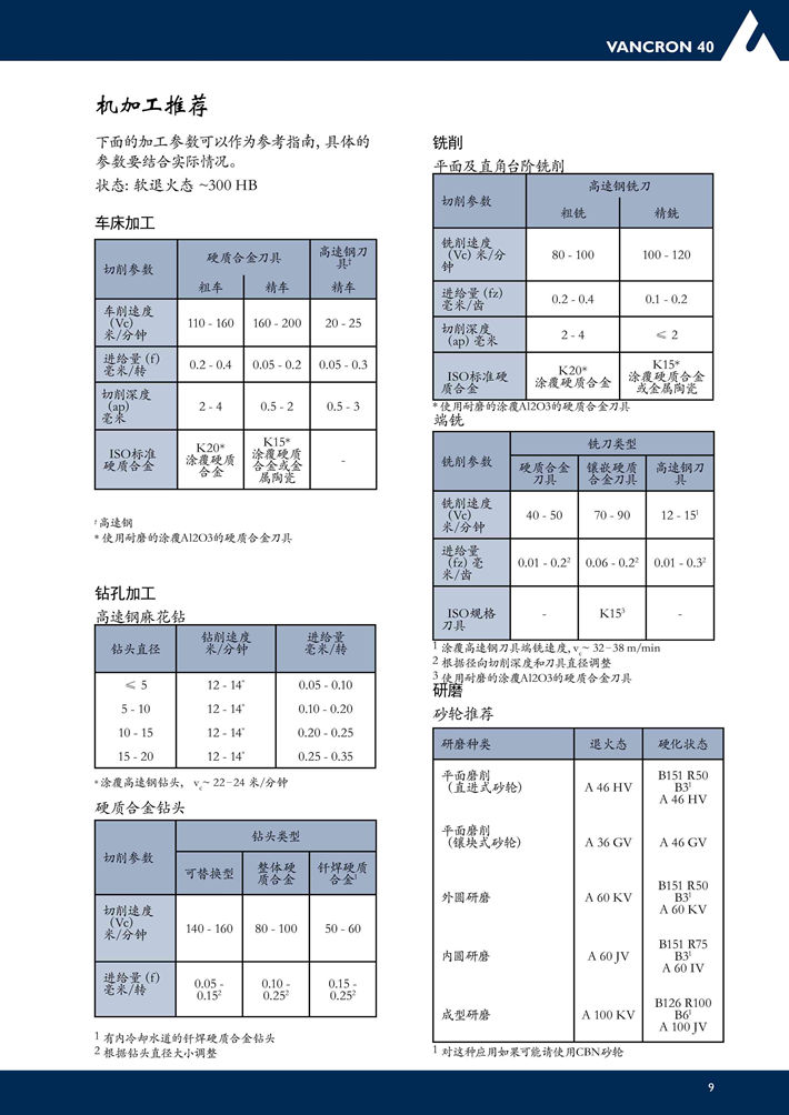瑞典進(jìn)口V40(VANCRON 40)粉末高速鋼:富氮的粉末冶金模具鋼,具有非常好的抗粘著和抗粘著磨損性能,通常不必做涂覆。...