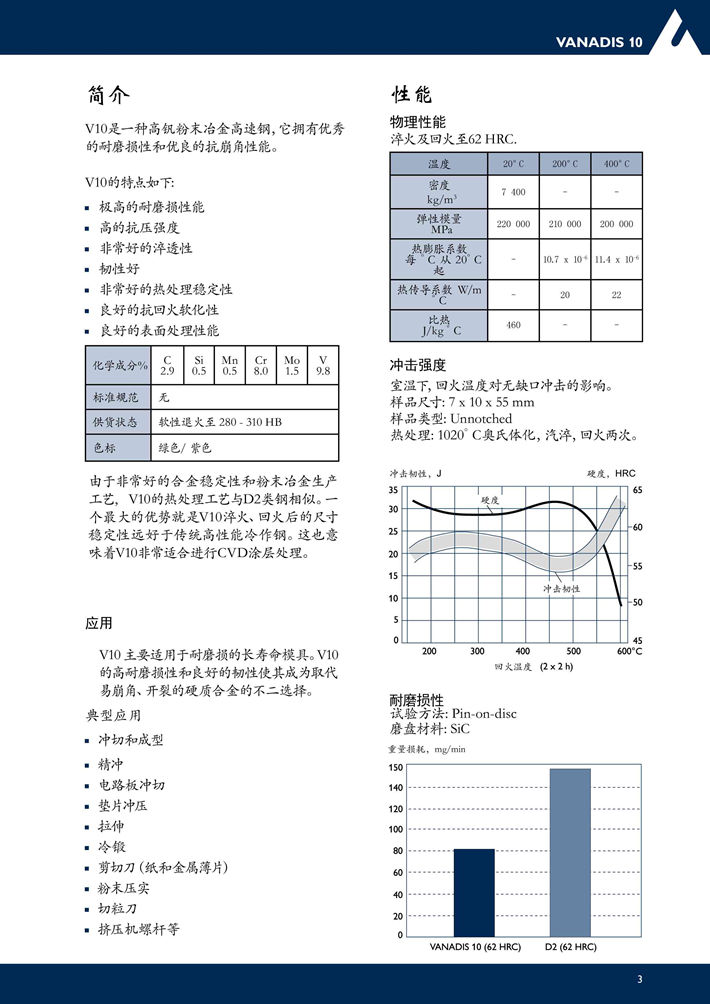 瑞典進(jìn)口V10(VANADIS 10)粉末高速鋼:粉末冶金模具鋼,具有極高的耐磨性。...