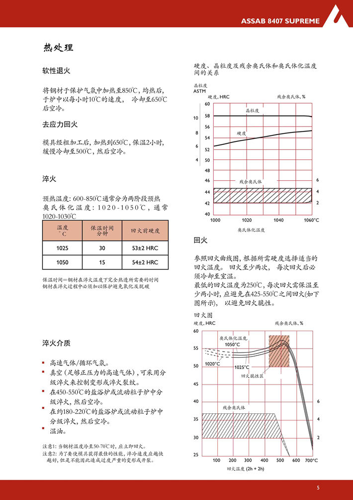 瑞典進(jìn)口8407熱作模具鋼:優(yōu)良的抗熱龜裂性能,符合北美壓鑄協(xié)會(huì)NADCA207-2003優(yōu)質(zhì)壓鑄模具鋼材標(biāo)準(zhǔn)...