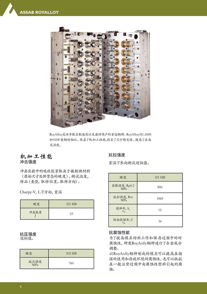 瑞典進(jìn)口RoyAlloy塑膠模具鋼:不銹模座鋼,具有出色的機(jī)加工性能和抗腐蝕性能...